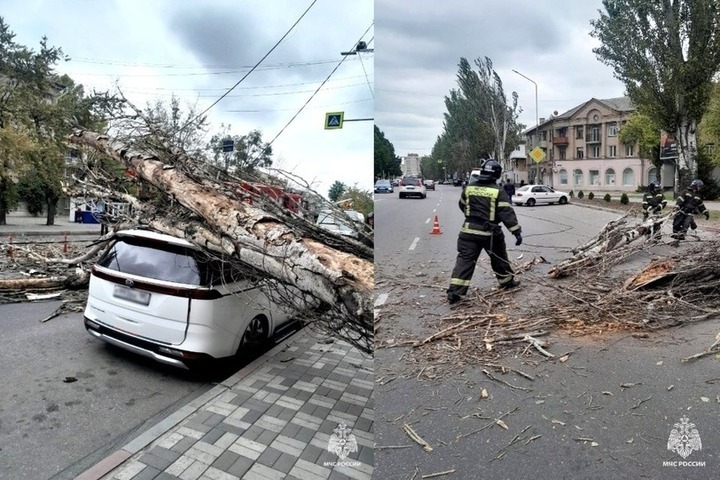 В МЧС России призвали жителей в непогоду не парковать автомобили вблизи высоких деревьев и рекламных щитов и не оставлять детей без присмотра.
