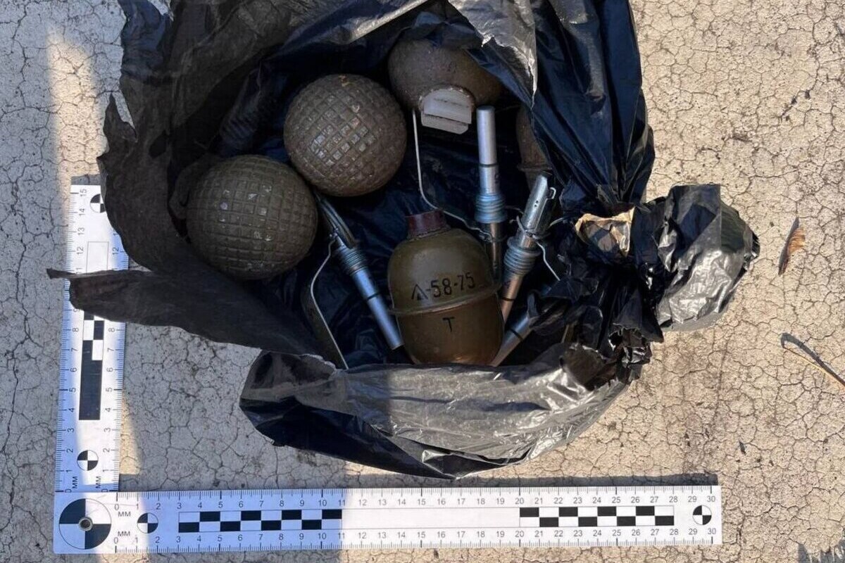 При осмотре места происшествия полицейские изъяли две ручные гранаты, три гранаты ударно-дистанционного действия и четыре запала к ручным гранатам.