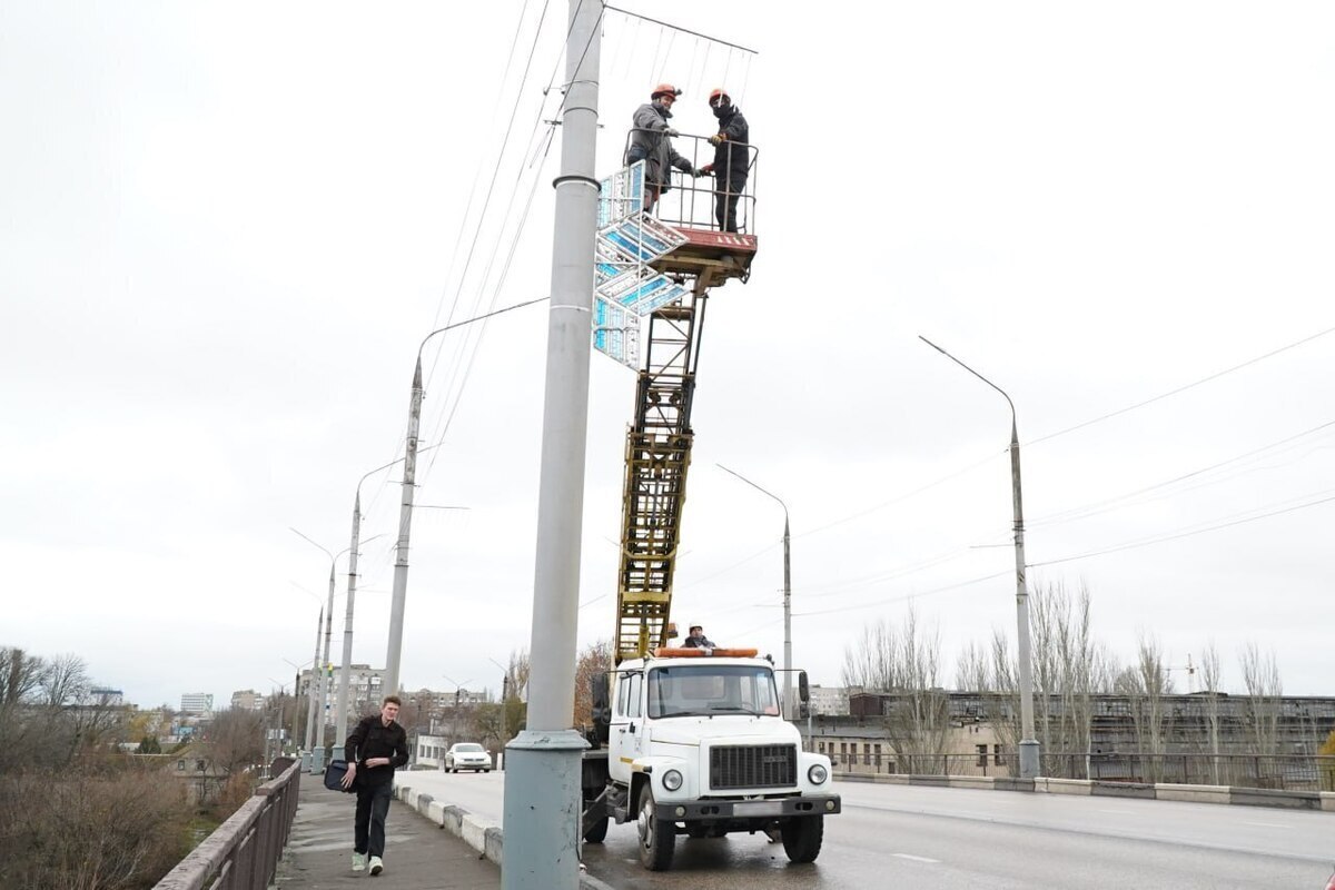 Специалисты МКУ «Горсвет» приступили к монтажу праздничных световых инсталляций. Уже установлена иллюминация на мосту, ведущем в район Новый Мелитополь.