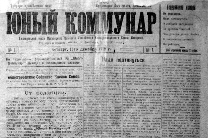 История легендарной газеты началась 11 декабря 1919 года с выпуска «Юного коммунара» – печатного органа Московского комитета Комсомола. Первый номер, отпечатанный на двух страницах в сложные годы Гражданской войны, положил начало масштабной медиаистории. Впоследствии газета сменила название на «Юношескую правду», а в сентябре 1929 года обрела свое современное имя – «Московский комсомолец».